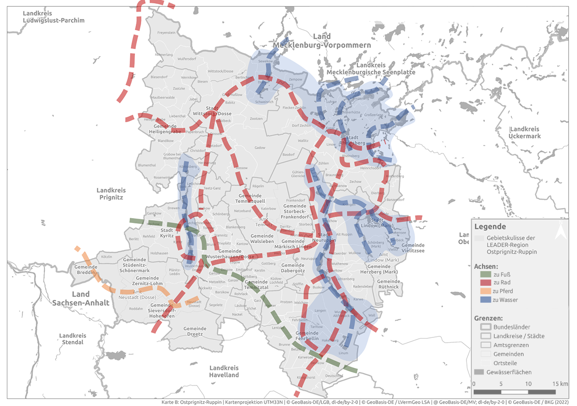 - Festgelegte touristische Achsen der LEADER-Region Ostprignitz-Ruppin